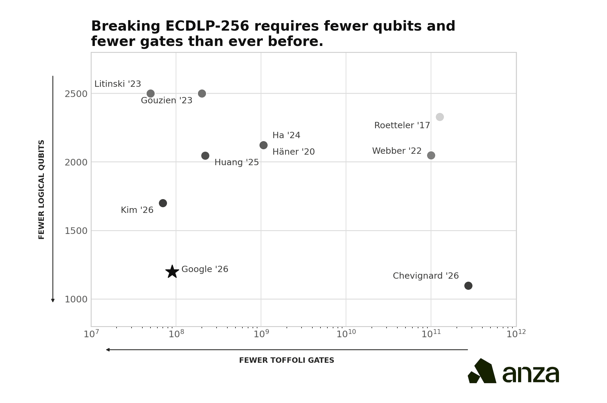 Last week, Google Quantum released a whitepaper detailing new quantum circuits for Shor's algorithm that dramatically reduce the resources needed to solve the 256-bit elliptic curve discrete logarithm problem (ECDLP-256), the mathematical foundation of the signature schemes used across most blockchains, including Solana. The team compiled two circuits: one using fewer than 1,200 logical qubits and 90 million Toffoli gates, and another using fewer than 1,450 logical qubits and 70 million Toffoli gates (Babbush et al. 2026). On a superconducting architecture with standard hardware assumptions, these circuits could execute in minutes using fewer than 500,000 physical qubits, roughly a 20-fold reduction over previous estimates (Babbush et al. 2026).